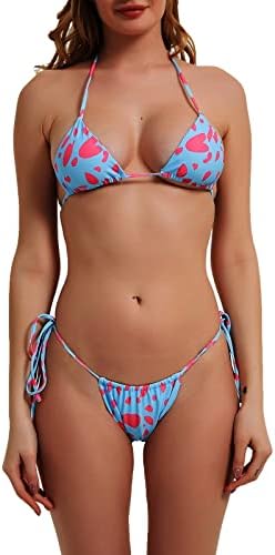 Girls’s Bikini Set Triangle Print Halter Tie Facet String Two Piece Swimsuits