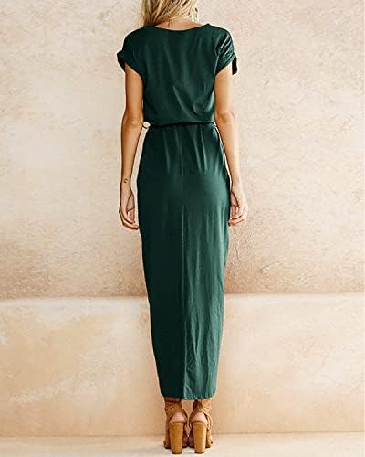 Girls’s Informal Summer season Costume Quick Sleeve Lengthy Costume Slit Social gathering Maxi Attire