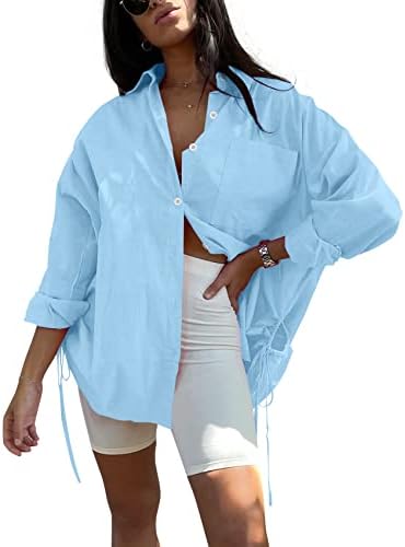Karlywindow – Womens Outsized Button Down Shirt Lengthy Sleeve Collared Boyfriend Tops Blouses
