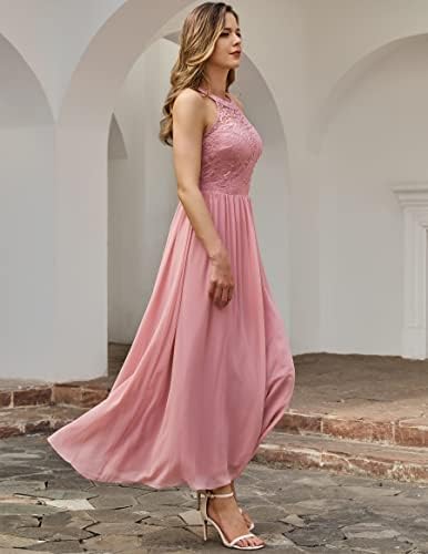 Ladies’s Sleeveless Halter Floral Lace Formal Costume Cocktail Occasion Costume Bridesmaid Costume