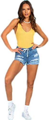 YMI jean shorts function a 5 pocket styling, destruction element, and a frayed hemline. The inseam is roughly 3 inches. Cotton. Polyester. Rayon. Spandex.