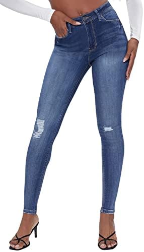 YMI Ladies’s Junior Excessive Rise Skinny Denims With Rip and Tear design